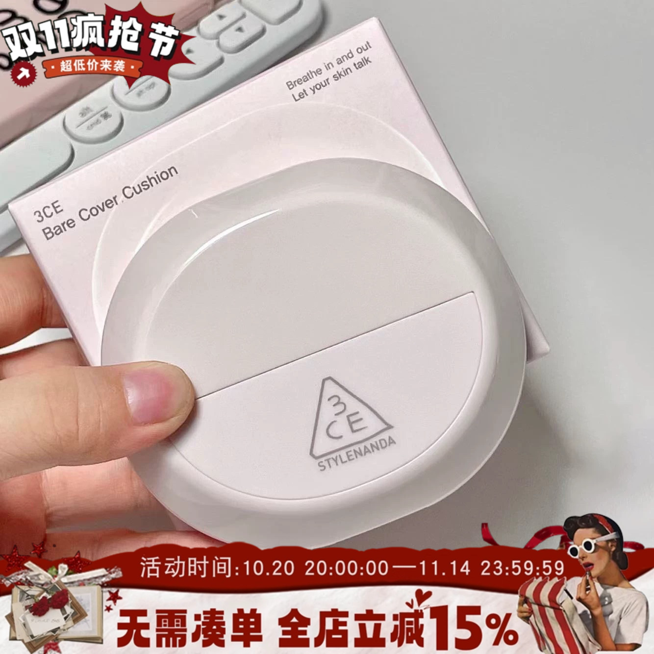 3CE小奶壳气垫轻薄粉底自然裸妆滋润bb霜遮瑕隔离干皮混干奶油肌