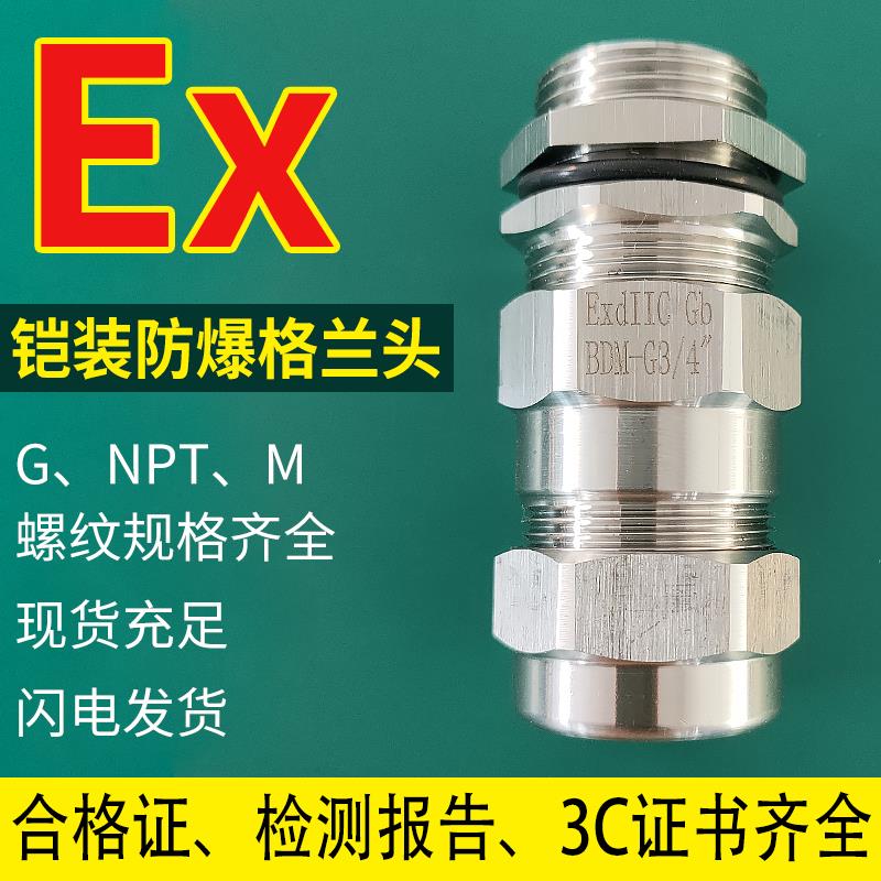 BDM-III防爆不锈钢格兰头金属电缆夹紧密封接头填料函固定头G1/2