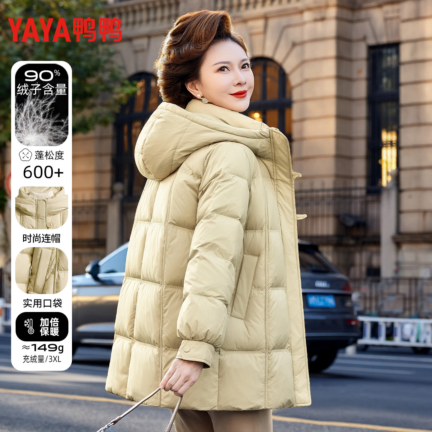 鸭鸭羽绒服女2025年秋冬新款中老年加厚中长款连帽妈妈装厚外套A