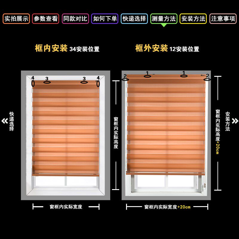 窗帘卷帘百叶免打孔杆卫生间厨房全遮光阳台升降卷拉式办公卧浴室