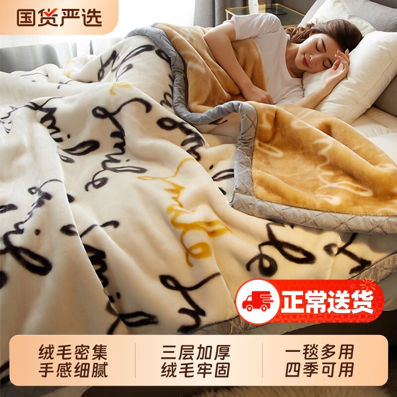 拉舍尔毛毯被子冬季加厚珊瑚绒毯子床单人加绒盖毯广东省被床上用