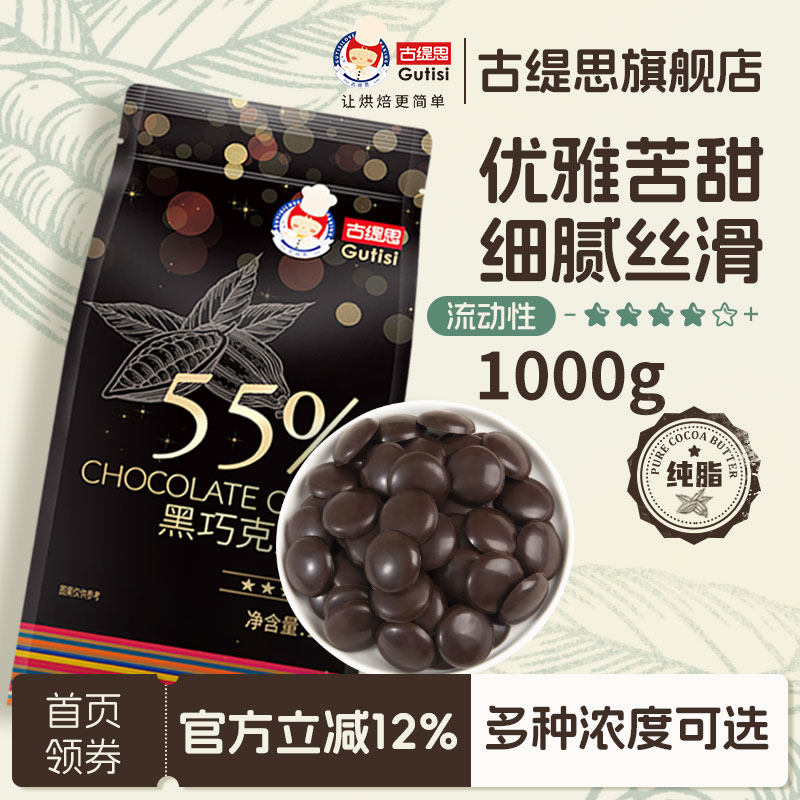 古缇思55%纯可可脂黑巧克力币豆烘焙专用商用巧克力烘焙原料淋面