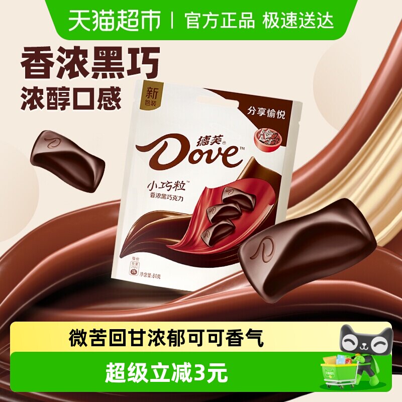 德芙小巧粒香浓黑巧克力84g*1袋健康小吃烘焙儿童小零食休闲办公