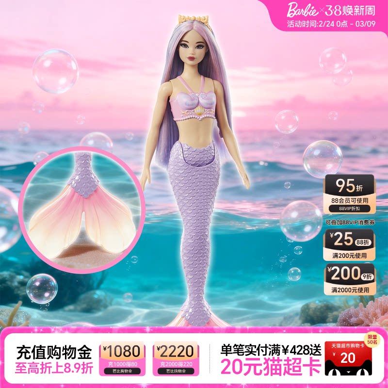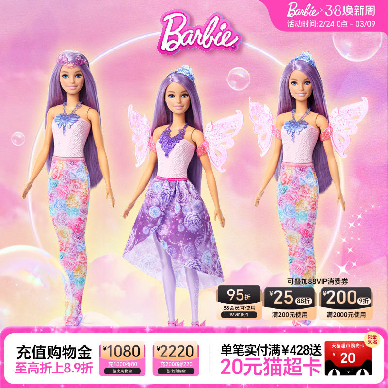 生日礼物芭比娃娃Barbie美人鱼系列童话世界女孩公主过家家玩具