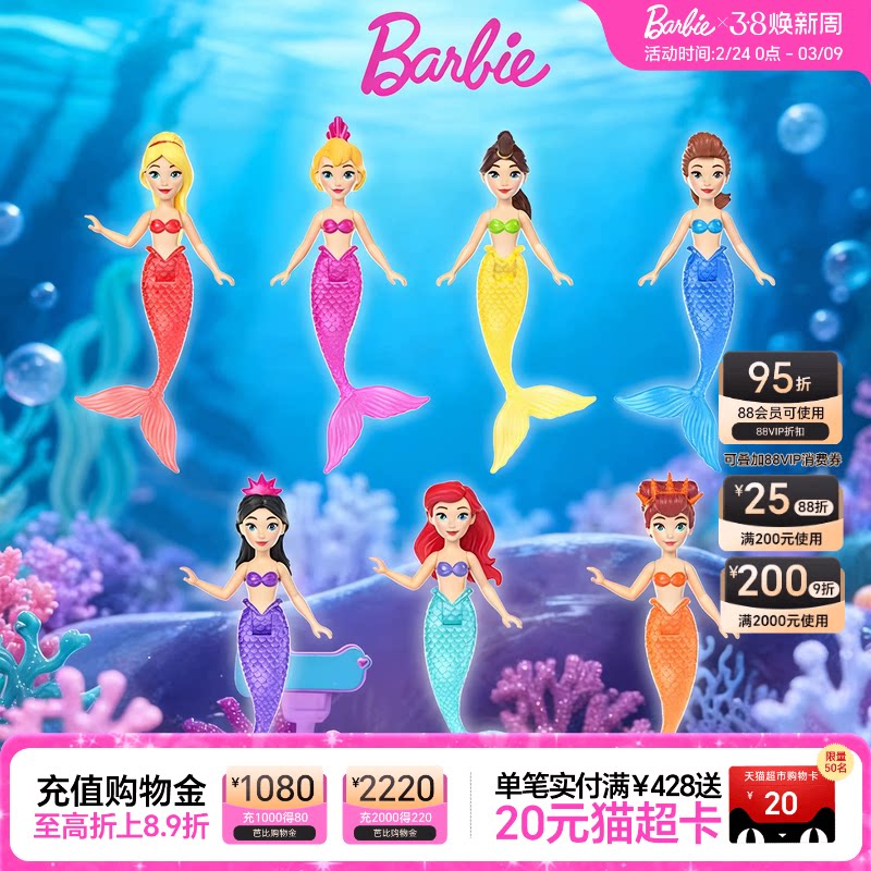 芭比娃娃Barbie迪士尼爱丽儿和姐妹美人鱼公主女孩过家家玩具礼物
