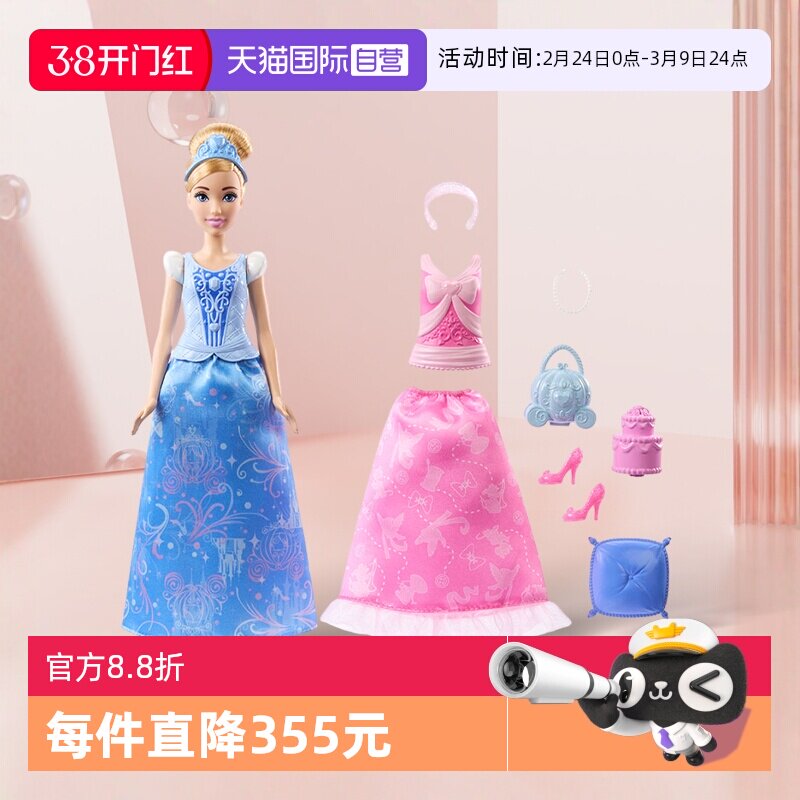 【自营】芭比娃娃迪士尼公主灰姑娘时尚套装可换装女孩过家家玩具
