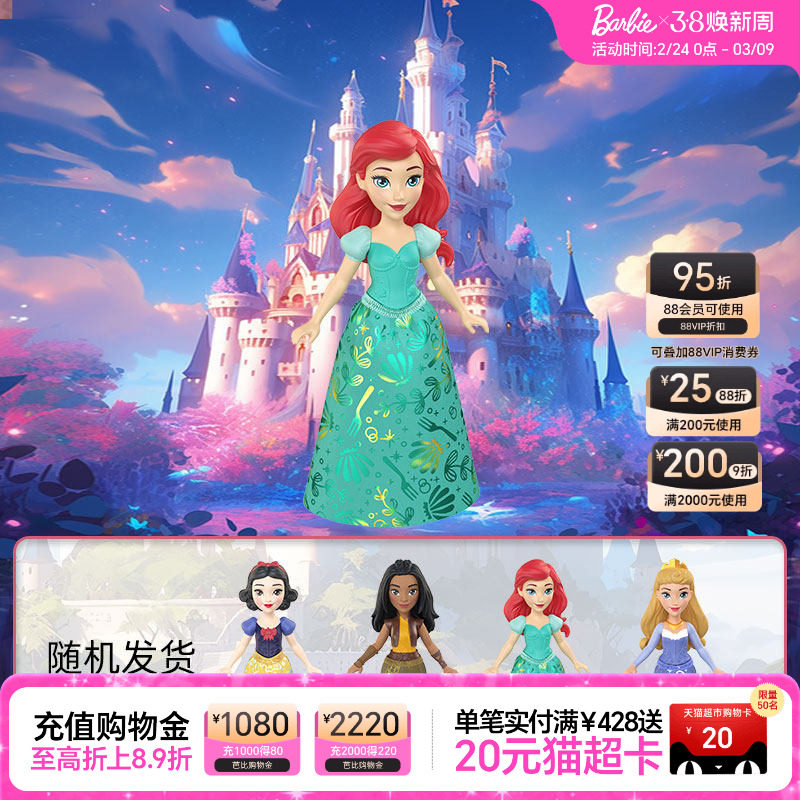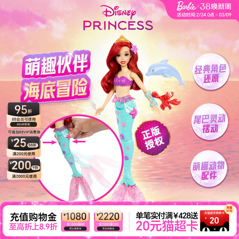 【自营】芭比迪士尼爱丽儿和姐妹娃娃公主惊喜美人鱼儿童女孩玩具