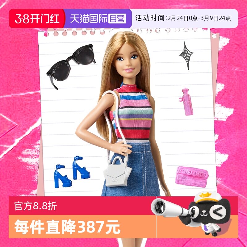 正版芭比Barbie之时尚达人娃娃套装社交互动女孩公主换装儿童玩具
