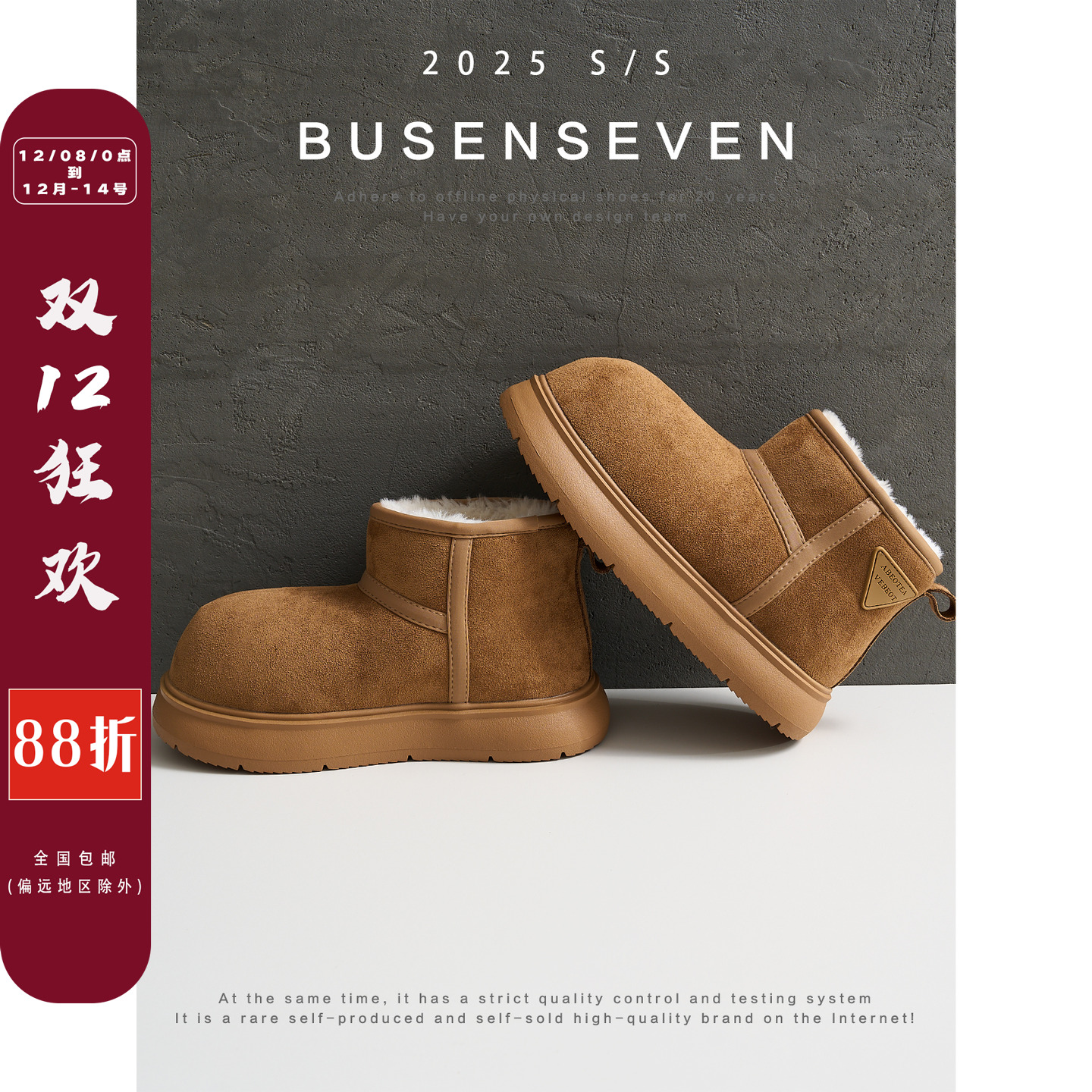 柒步森林牛反绒加绒厚底短筒棉靴保暖冬季时尚雪地靴子女2025新款