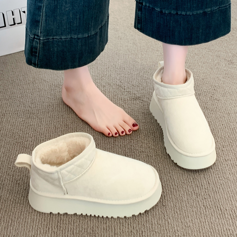 厚底加绒加厚雪地靴子女2025冬季新款保暖百搭面包雪地棉鞋毛毛鞋