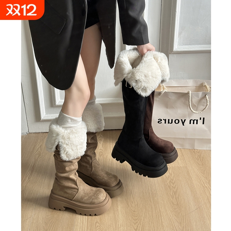 六点大叔过膝长筒靴女2025冬新款平底长靴加绒保暖羊羔毛雪地靴子