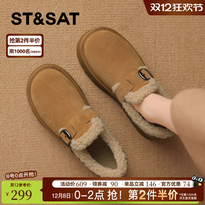星期六加绒保暖棉鞋女2025冬季新款雪地靴子女款羊羔绒勃肯毛毛鞋