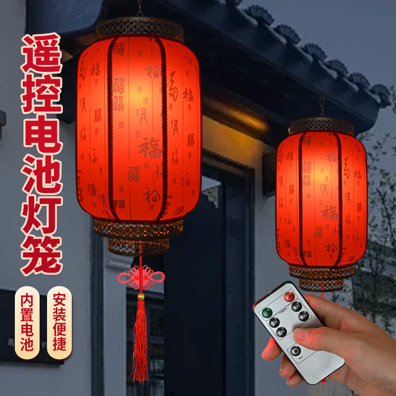 大红羊皮福字灯笼2026新款免插电过年春节户外大门口乔迁阳台吊灯
