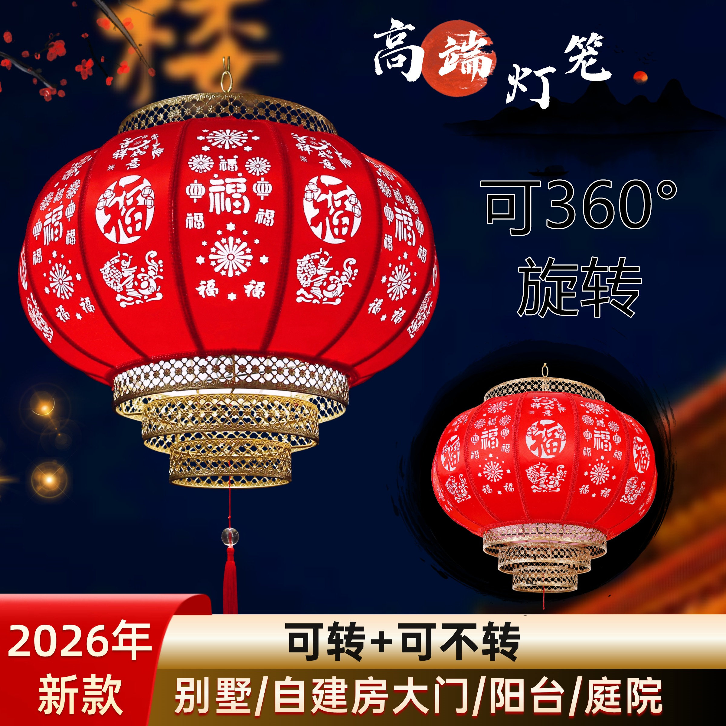 羊皮灯笼新款2026阳台别墅大门口旋转红灯笼乔迁春节过年中式吊灯