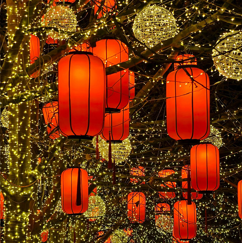 2025吊挂树上的小羊皮灯笼氛围装饰藤球街道亮化户外景区防水公园