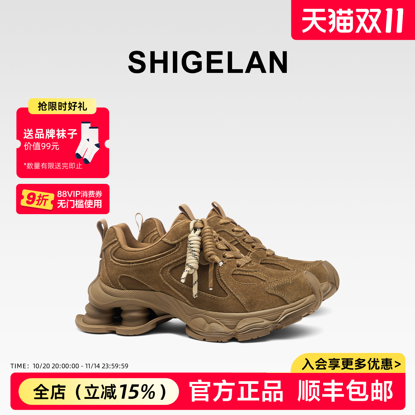 诗歌兰2025新款复古厚底老爹鞋女鞋真皮系带休闲鞋增高时尚运动鞋