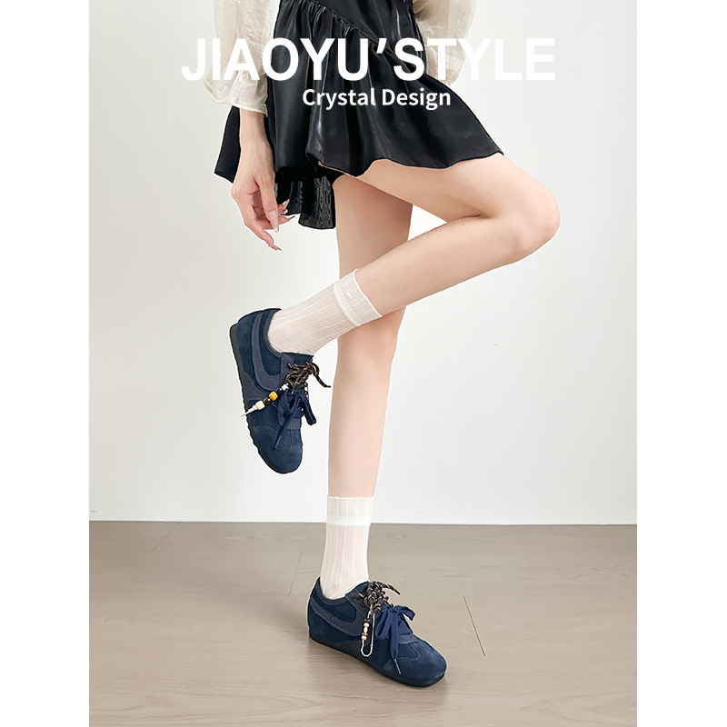 真皮~骄屿蓝色芭蕾德训鞋2025新款秋冬系带通勤百搭休闲运动板鞋