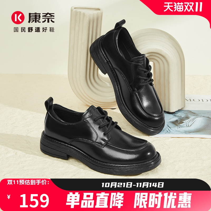 康奈女鞋真皮厚底乐福鞋春季新款系带休闲女单鞋百搭学院风小皮鞋