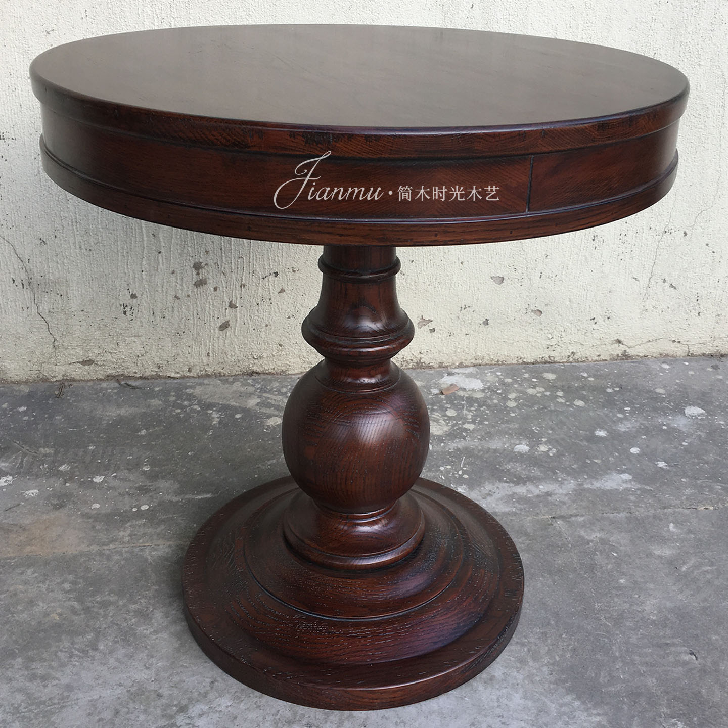 中古风复古圆形茶几家用茶桌客厅小户型美式实木法式新款客厅边几