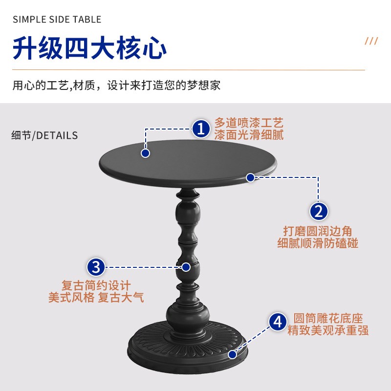 欧式简约圆桌小圆几美式咖啡桌小圆桌花桌圆形小茶几创意边几边桌