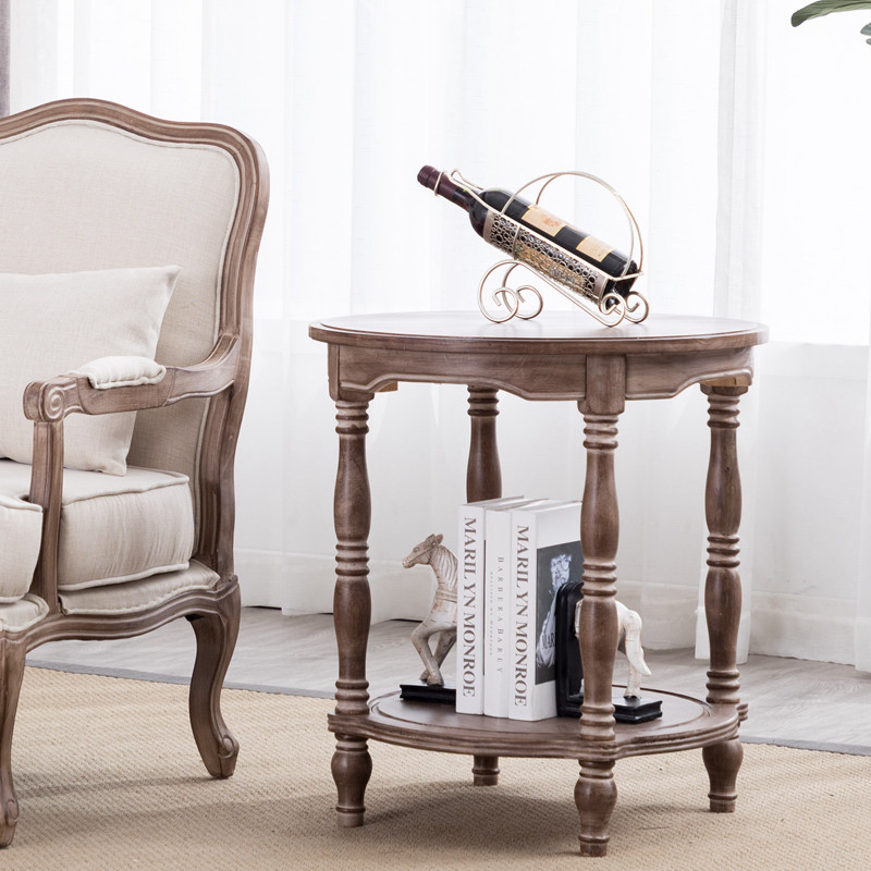 美式边几小茶几沙发旁边双层桌子客厅角几圆北欧实木复古轻奢做旧