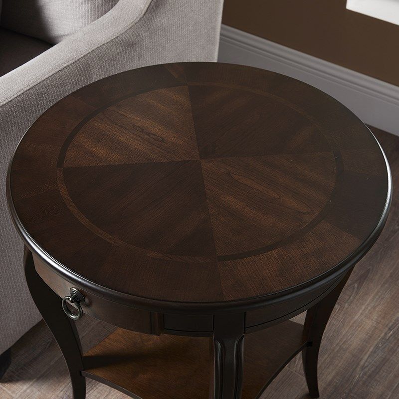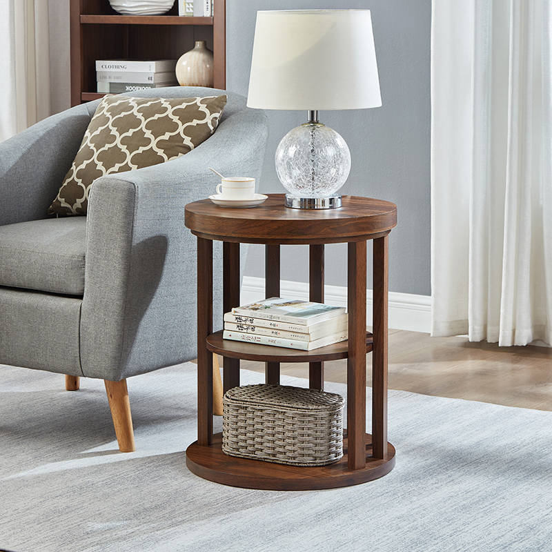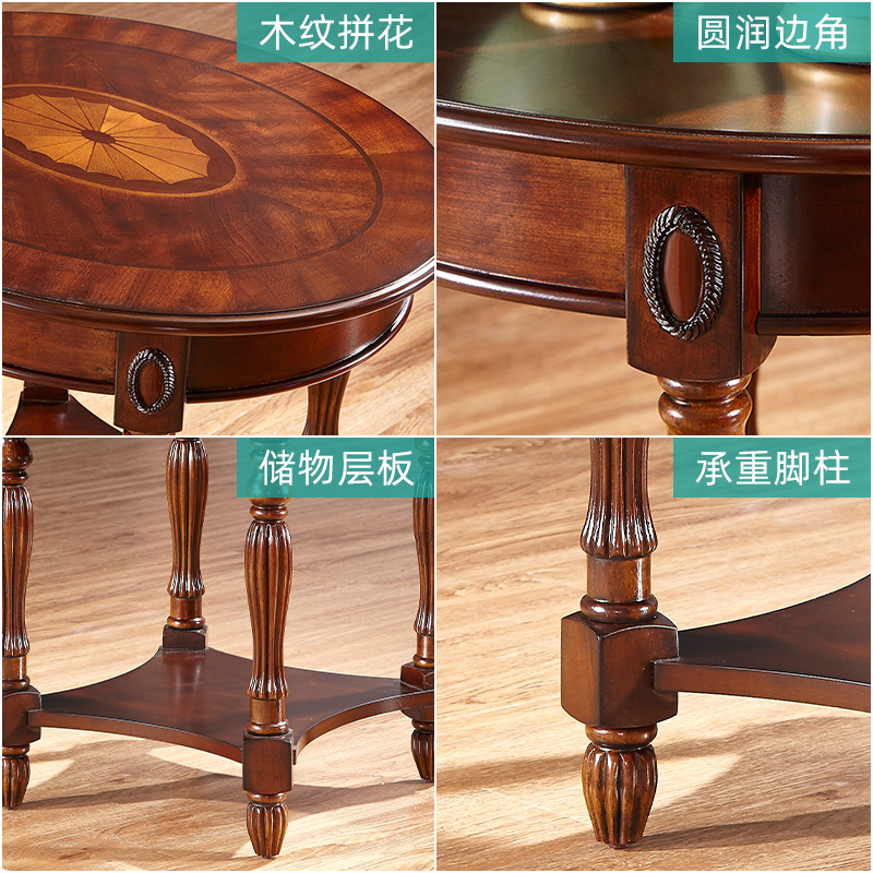 欧维佳 美式边几沙发边桌圆形小桌子边几角落几双层小茶几 小木桌