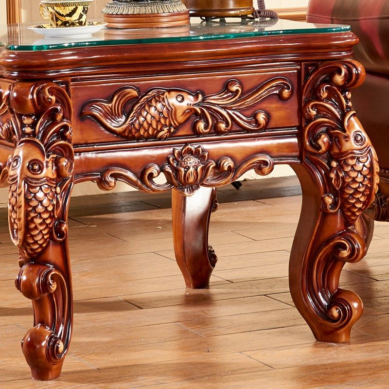 欧式方几小茶几全实木玻璃台面角几高档端美式边几小咖啡鱼款桌子