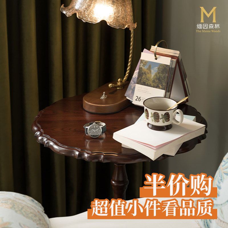 美式复古沙发边几茶几客厅家用中古风实木茶桌美式边几阳台小茶几