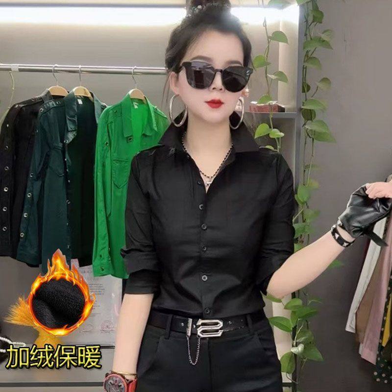 时尚加绒衬衫女长袖秋冬2025新款职业OL衬衣修身显瘦工装上衣百搭