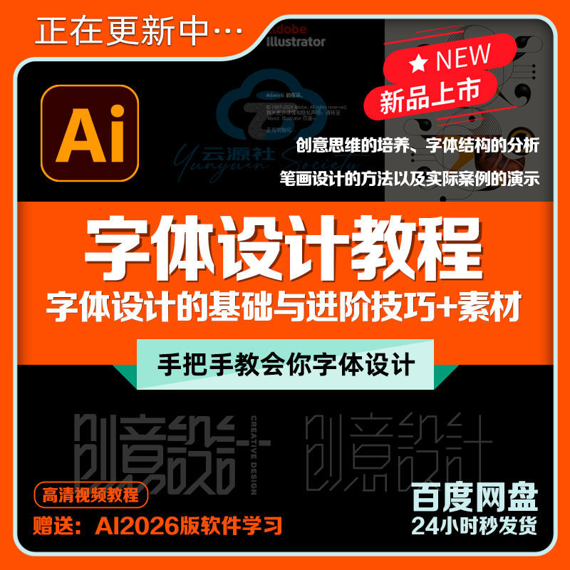 字体设计教程AI平面设计LOGO创意艺术字案例入门到精通视频课素材