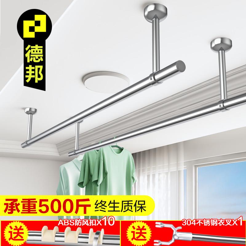 晾衣杆阳台顶装固定晒衣杆不锈钢单杆晾衣架打孔凉衣杆侧装凉衣捍