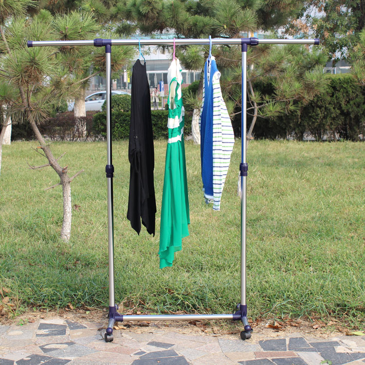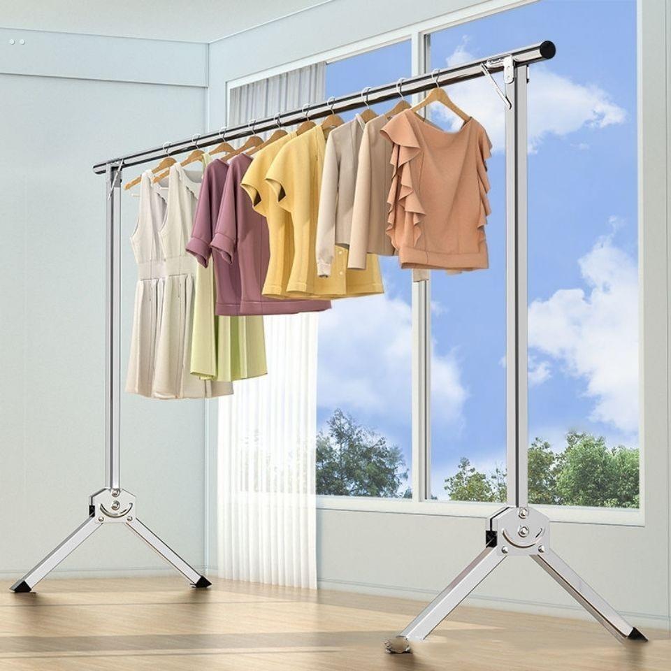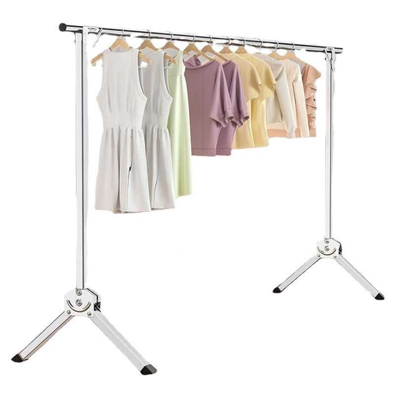 不锈钢简易晾衣架落地阳台折叠伸缩室内户外旅行摆摊单杆挂衣服架