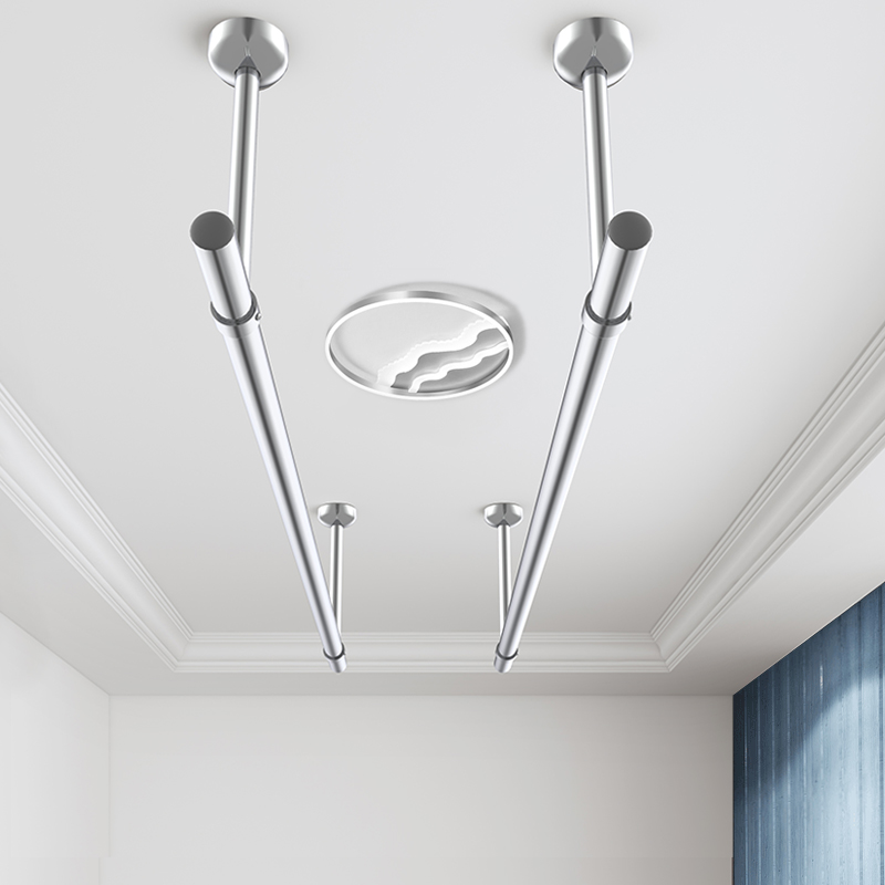 晾衣杆阳台顶装固定式晾衣架家用不锈钢白色晒衣杆单杆凉衣服杆子
