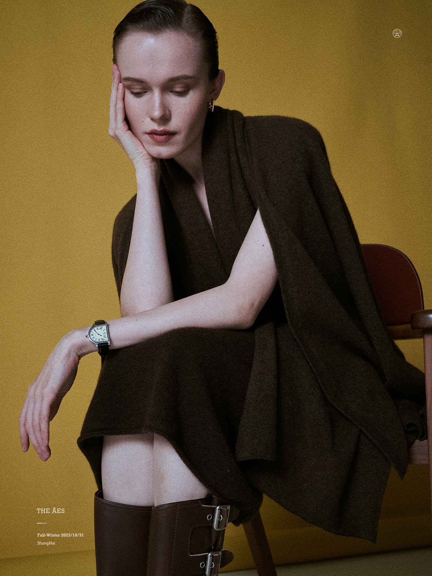 安上THE AES原生东方 珍稀之宝牦牛绒冷帽围巾针织毛衣针织裤套装