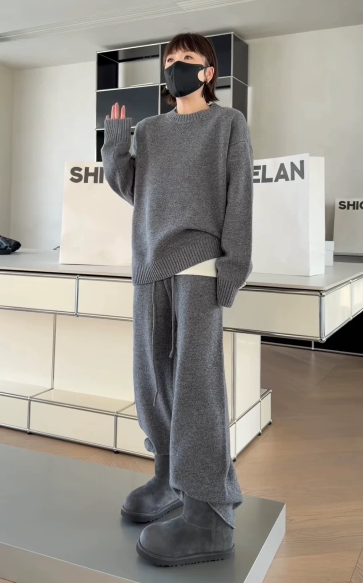 秒发诗歌兰15168慵懒质感温柔圆领毛衣+针织裤套装女冬季25年
