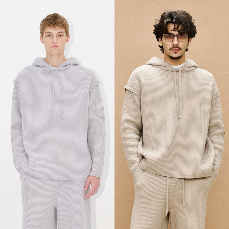 UNICA/慵懒旋律_Athflow美丽诺羊毛航海袖标连帽卫衣针织裤套装男