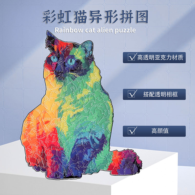 彩虹猫puzzle透明亚克力 异形不规则拼图 成人高难度解闷玩具礼物