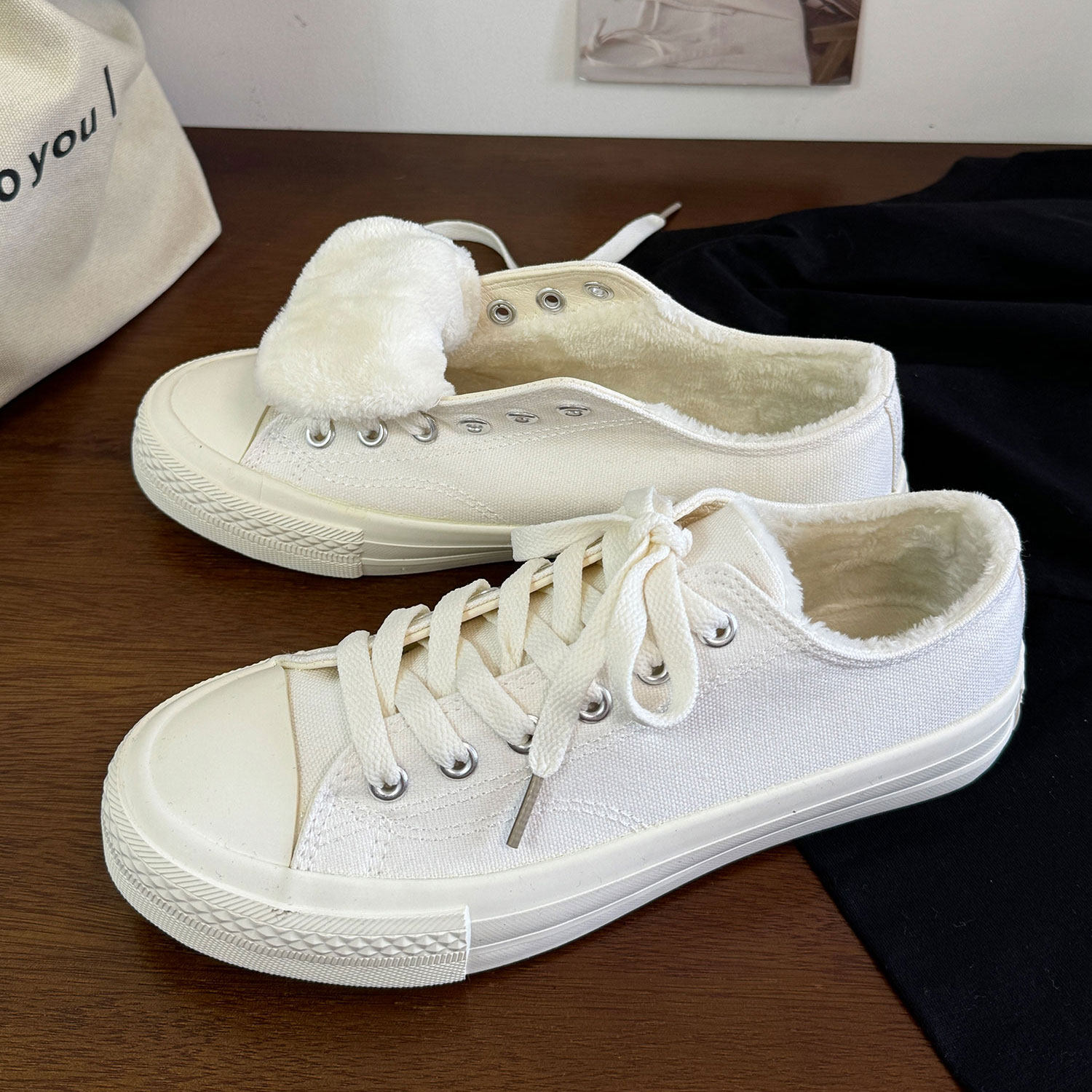 - 白色 低帮 系带 帆布鞋 女