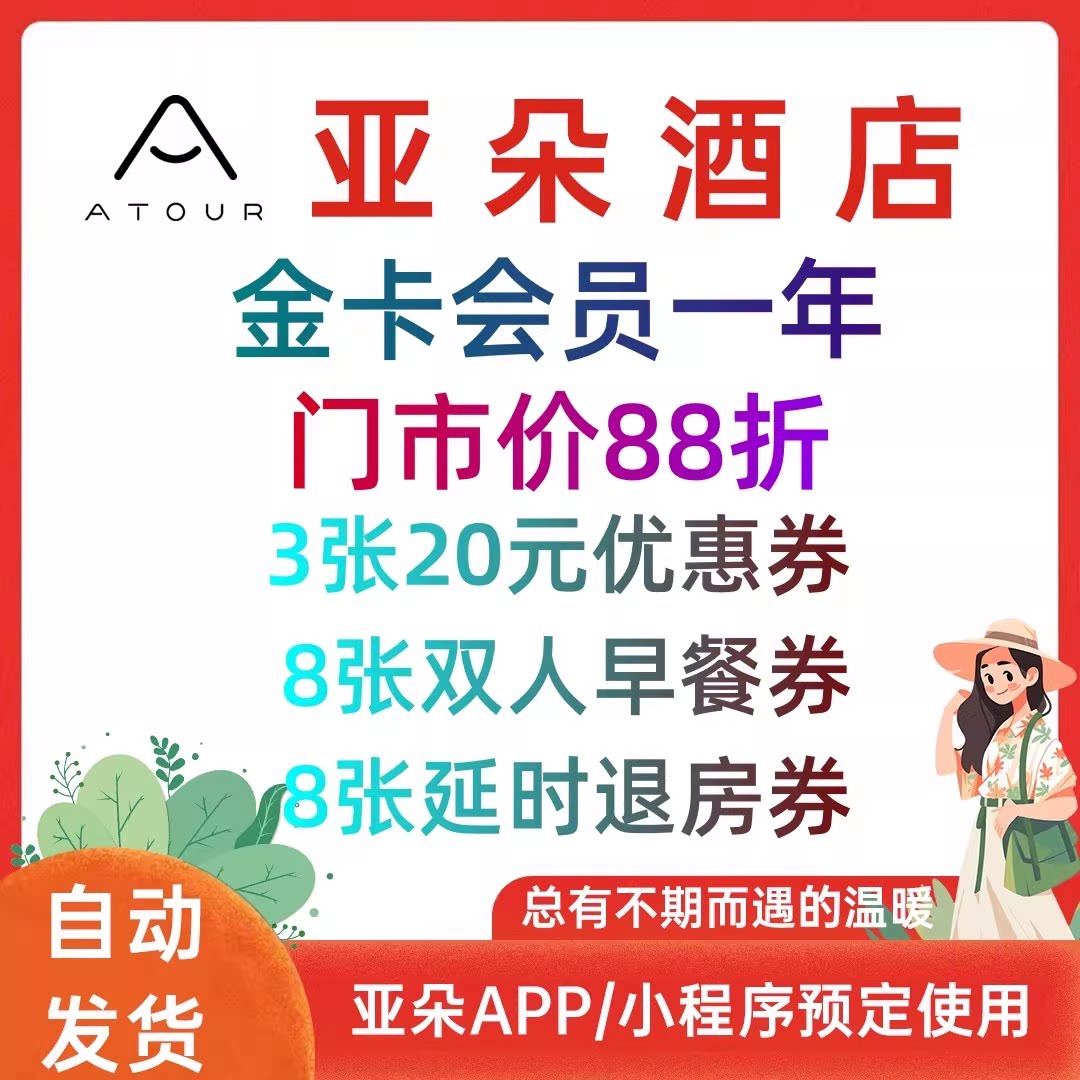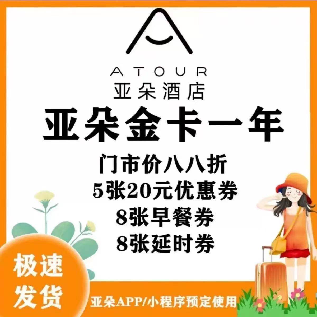 【直充】亚朵酒店金卡会员 12个月 年卡 房价折扣 会员专享券