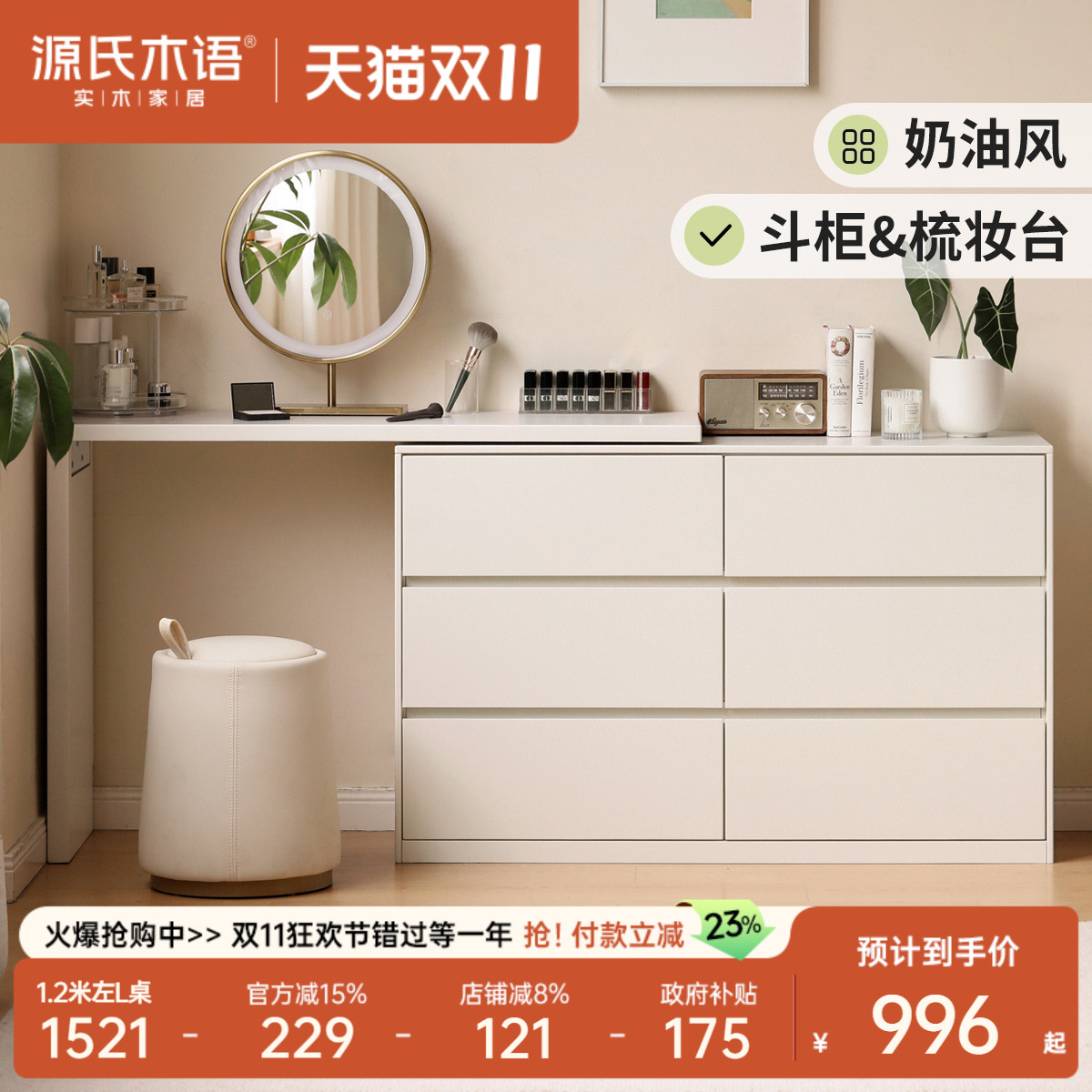 源氏木语卧室斗柜梳妆台电脑桌一体床尾转角化妆台日式原木化妆桌