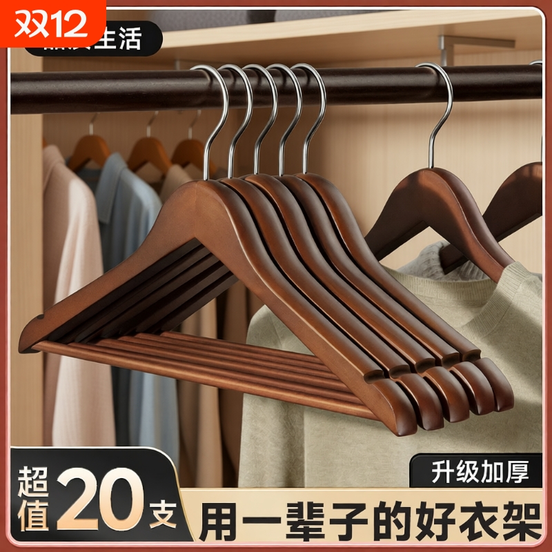 服装店衣架胡桃木色女士专用实木衣挂防滑宽肩衣架裤夹套装可定制