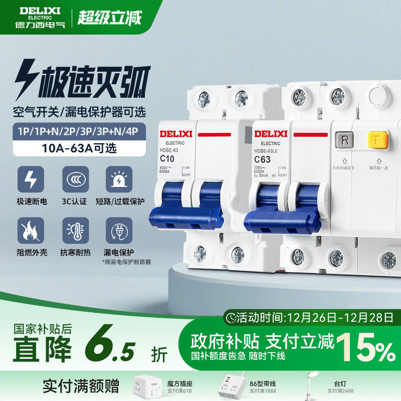 德力西空气开关漏电保护器总开关32a漏保63a断路器4p40a2p家用3p