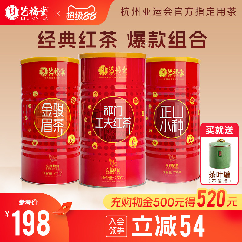 3罐装艺福堂茶叶金骏眉正山小种祁门红茶特级正宗浓香型奶茶专用