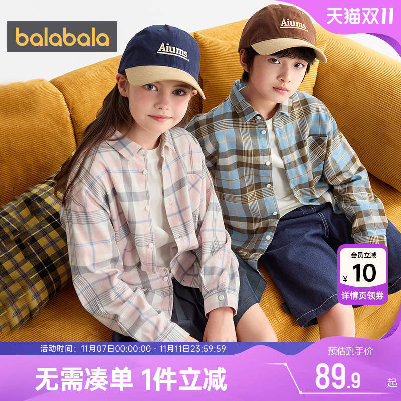 巴拉巴拉儿童长袖衬衫男童女童格子衬衣秋季新款童装中大童上衣潮