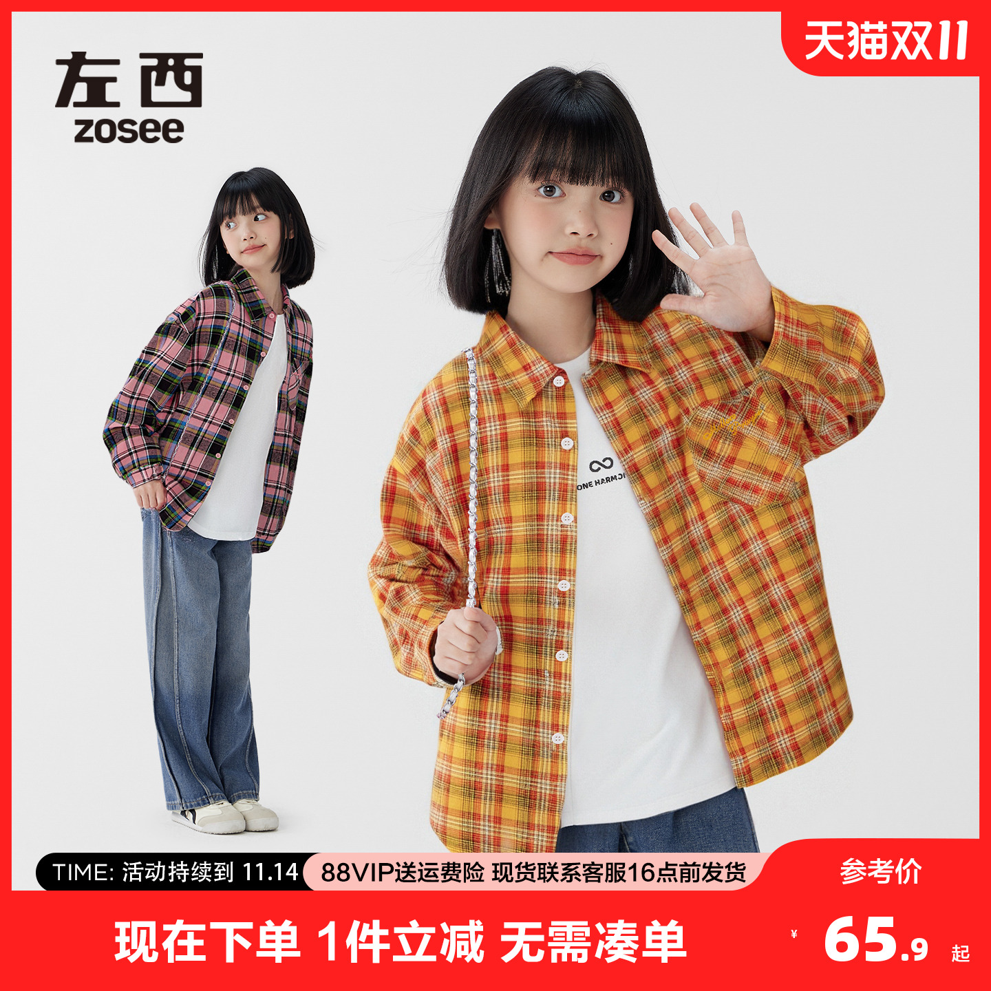 左西童装女童格子衬衫长袖儿童女复古超好看2025新款薄外套女大童