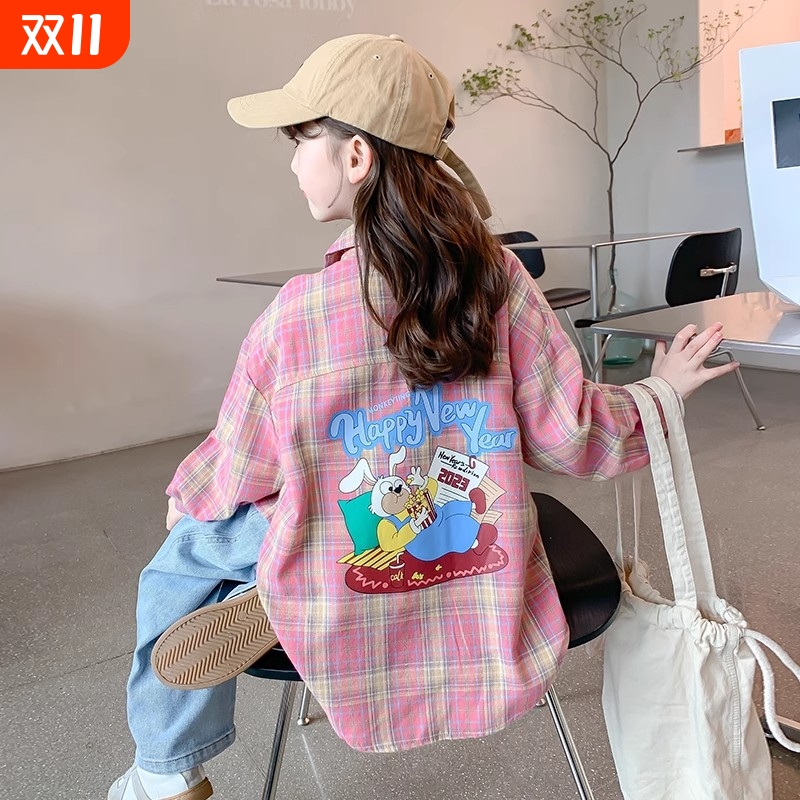 女童格子衬衫2025新款春秋款儿童长袖衬衣大童秋季上衣外套初中生
