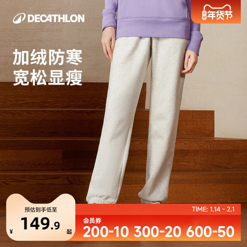 迪卡侬运动裤校服裤卫裤加绒针织毛圈休闲宽松跑步长裤女秋冬SAP2