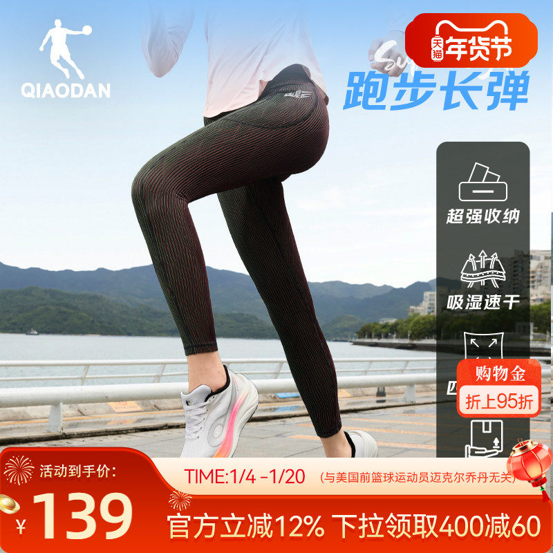 乔丹半弹跑步长裤女生健身运动瑜伽裤子秋季新款速干马拉松压缩裤