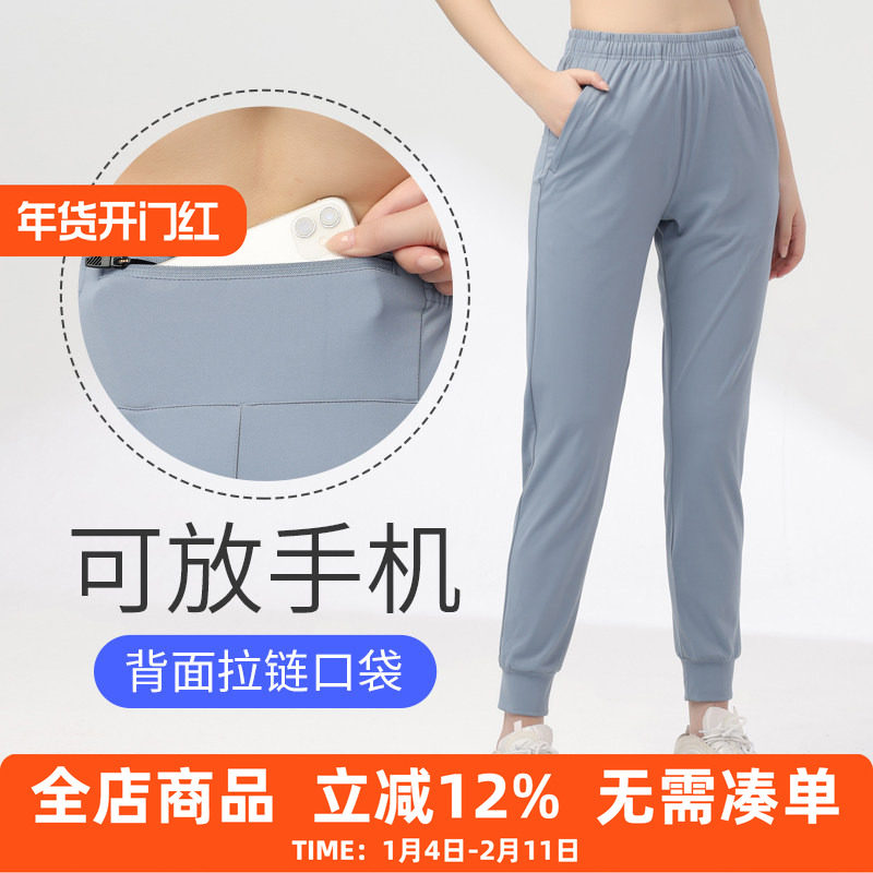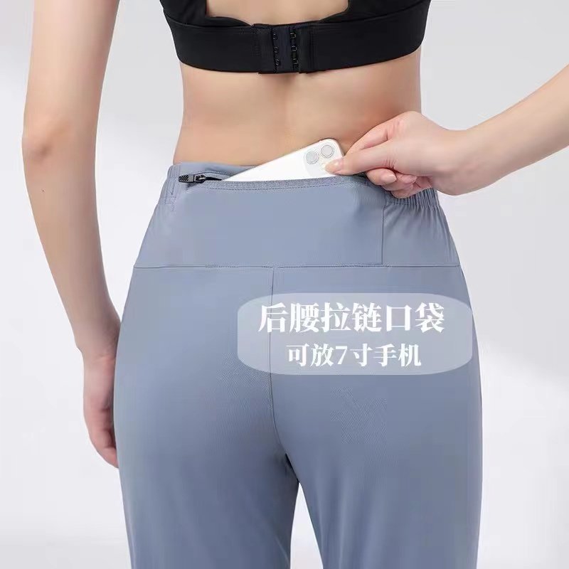 冰丝速干跑步长裤女弹力透气可放手机后腰口袋健身薄款小直筒卫裤
