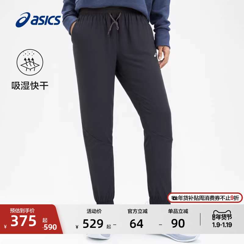 ASICS亚瑟士新款女子跑步长裤女式梭织吸湿排汗松紧系带运动长裤